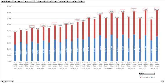 - Consequently, the headline inflation number of 32.15% for August 2024 only facilitates directional discussions on a macro-basis about whether prices are higher or lower compared to prior periods.